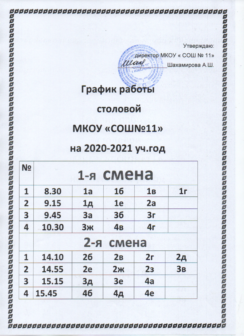 График работы школьной столовой